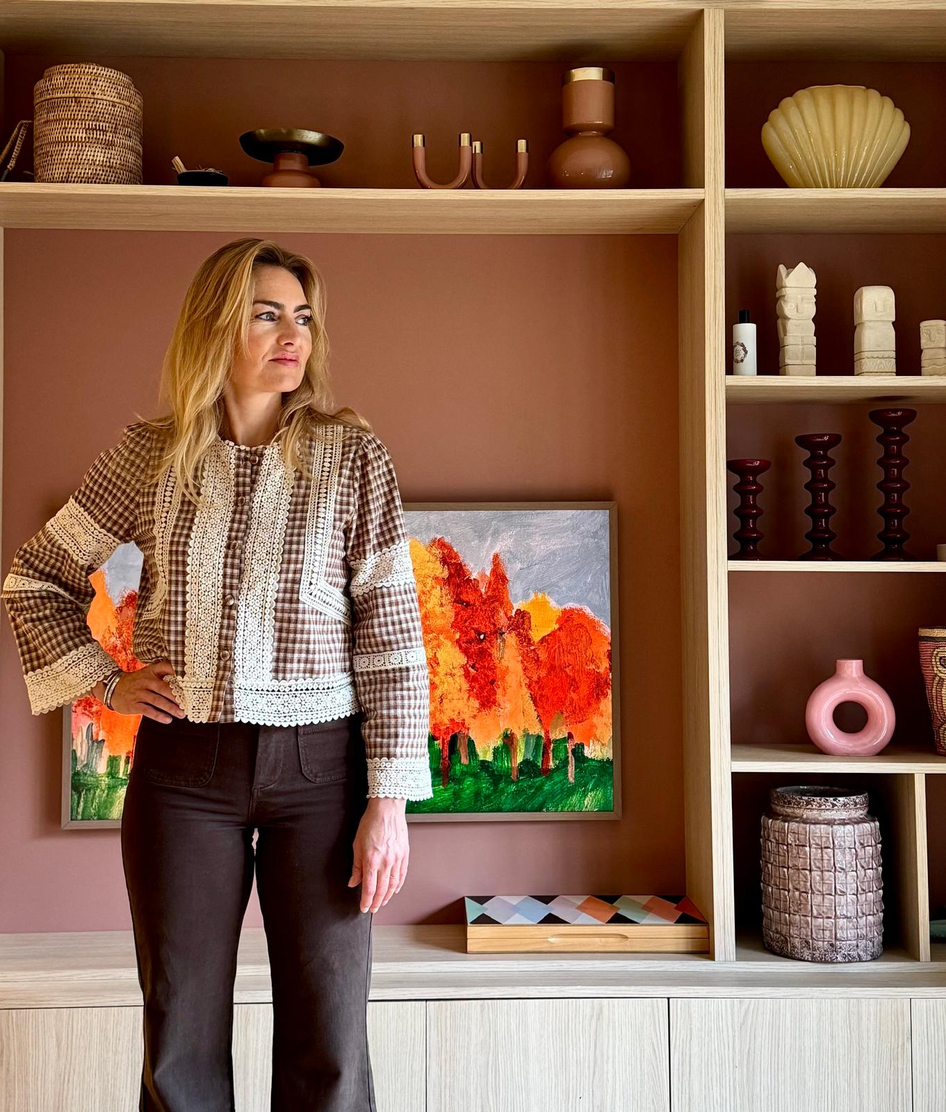 Blouse à carreaux entièrement boutonnée avec détails en dentelle